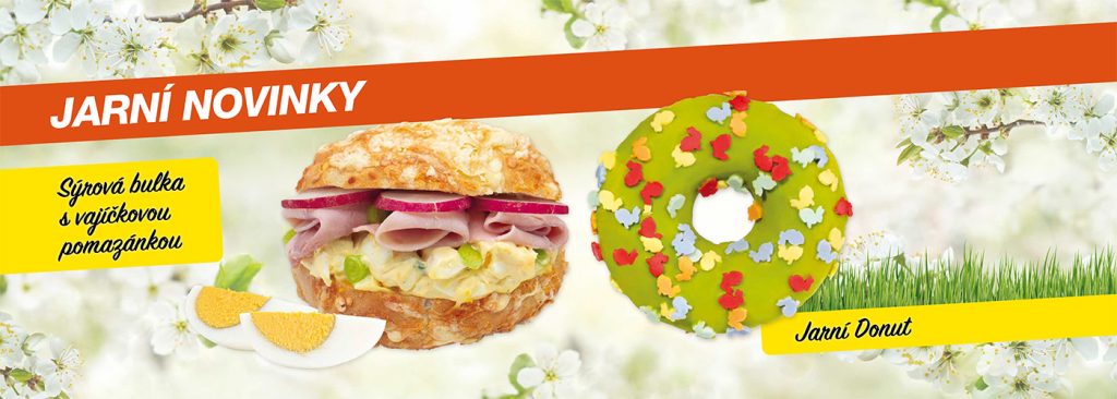 Jaro láká na výlet do přírody i ke změně jídelníčku. V našem pekařství si opět můžete pochutnat na Sýrové bulce s vajíčkovou pomazánkou, která je naším skutečným bestsellerem. A nebo si přijďte udělat radost Jarním donutem, který vás nenechá na pochybách, že jaro už je skutečně za dveřmi.